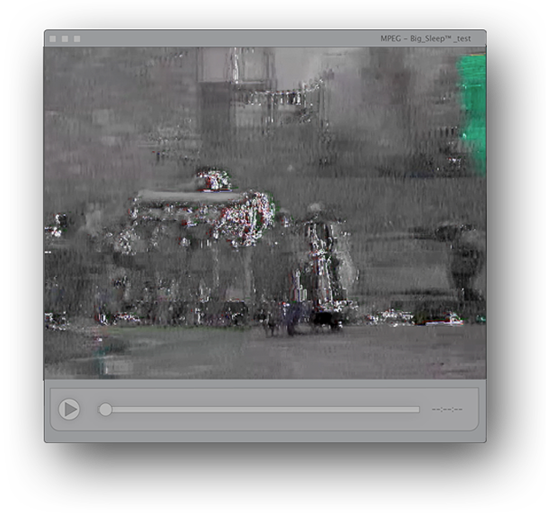 The Big_Sleep™ Media Encoder acts like a cold storage for digital elements. Transcoded files won't decay, their encoding will remain perfectly intact at stable resolutions—but they may never be opened or viewed again. A mix between a Borges story and a computational trust exercise, this video project tells its story through media artifacts as they ebb, flow, decay, and are resolved. The lives of the Fox Movietone filmmakers, the intentions of their archivists, the lives (and deaths) of the original subjects all conflate into a video collage of saving and letting go.
